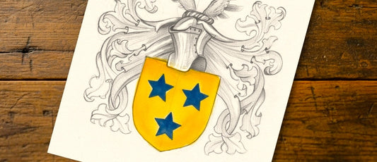 Bespoke Family Coat of Arms – Original Colourized Pencil Sketch (A4) – Handmade Heraldic Art