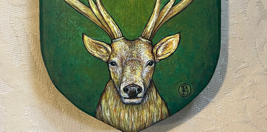 The Holy Stag – Original Miniature on Wood & Fine Art Print from the Watercolour – Saint Hubert