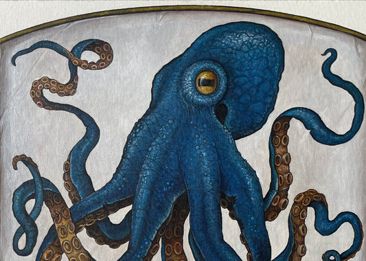 Indem ich wunderbare Kreaturen in der heraldischen Tradition male, betone ich ihre Rolle als Krafttiere und Beschützer. Der Schild diente dem Kämpfer stets zur Verteidigung, er ist Barriere und Waffe zugleich. In einem Schild portraitiert, offenbart jedes meiner Biester sein wahres Wesen und beschützt jene, die sich ihm verbunden fühlen.