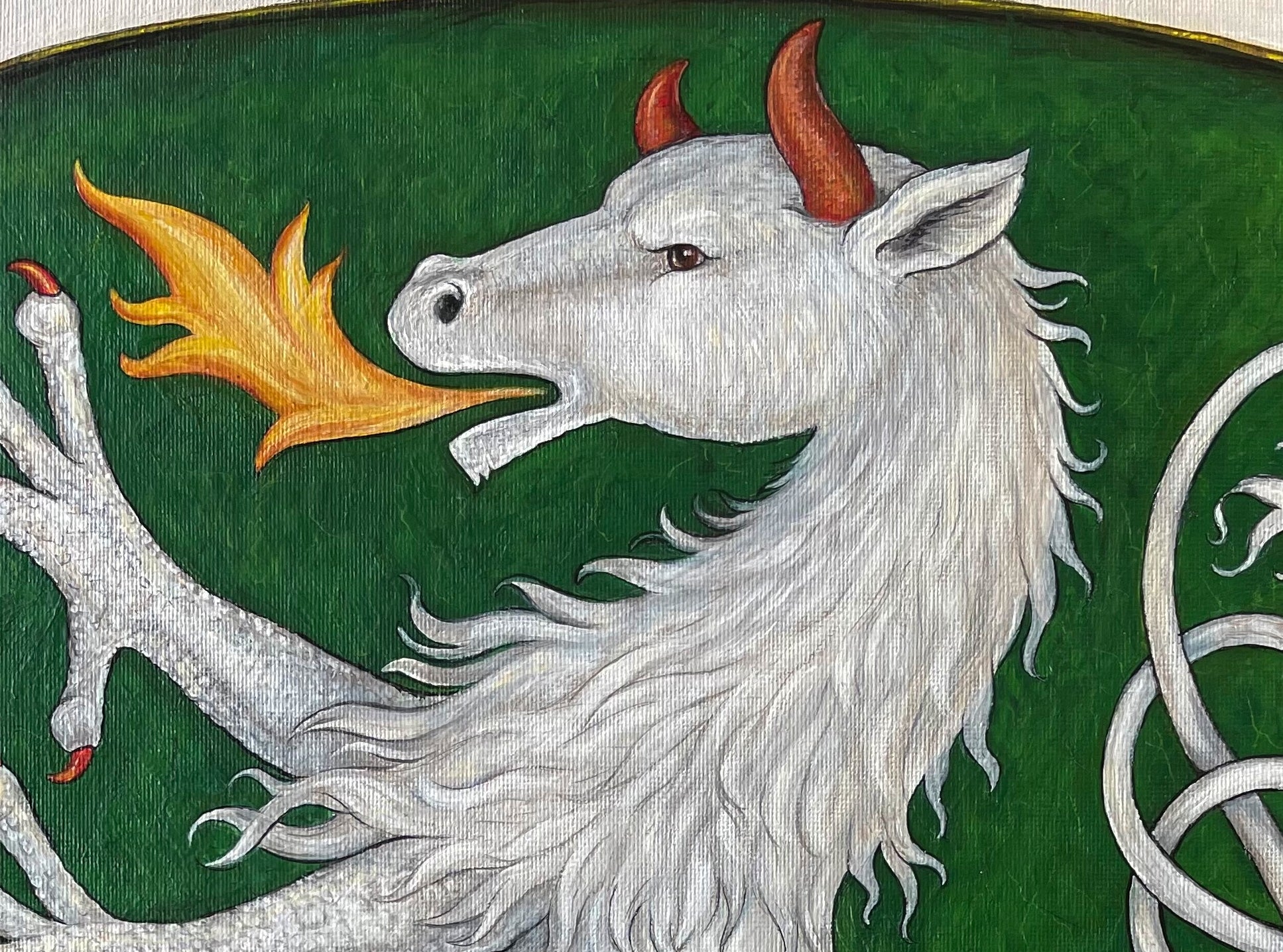 Das Steirische Wappen zeigt einen silbernen, rotgehörnten und rotbewehrten, flammenspeienden Panther auf Grün.