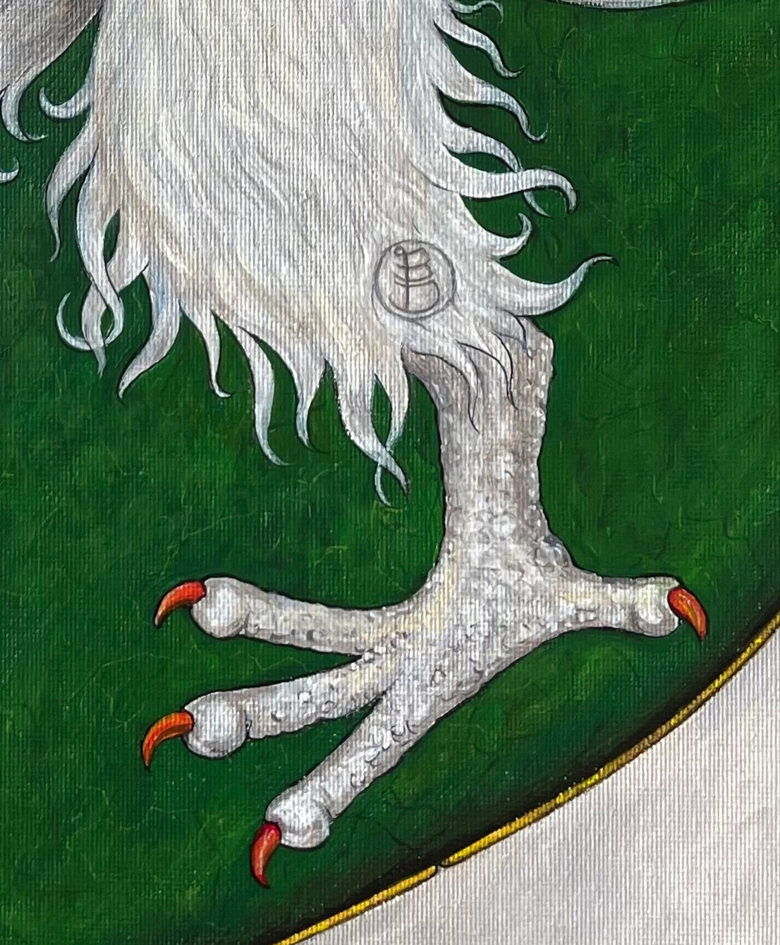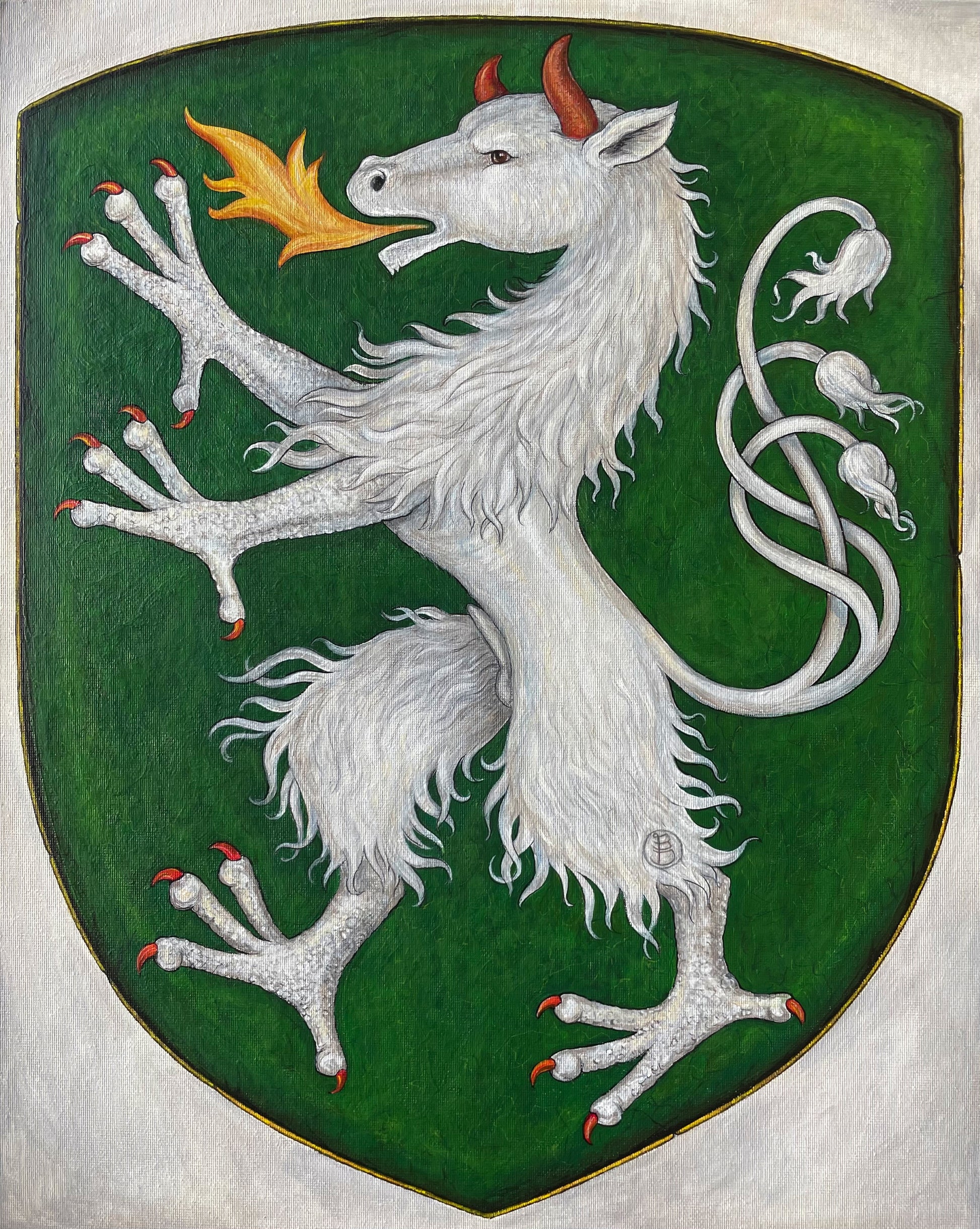 Dieser Panther („Panthier“) hat mit einer schwarzen Grosskatze wenig gemein - der heraldische Panther ist eine Chimäre: Der Kopf von Pferd oder Stier, mit langen Ohren und kurzen Hörnern; schwanenartig gebogener Hals mit Löwenmähne; Klauen eines Adlers und aufgerichteter Löwenschwanz; an den dicht bezottelten Beinen wieder Adlerklauen; die vormals aus allen Körperöffnungen ausgestoßenen Flammen reduziert auf eine Flamme aus dem Rachen.