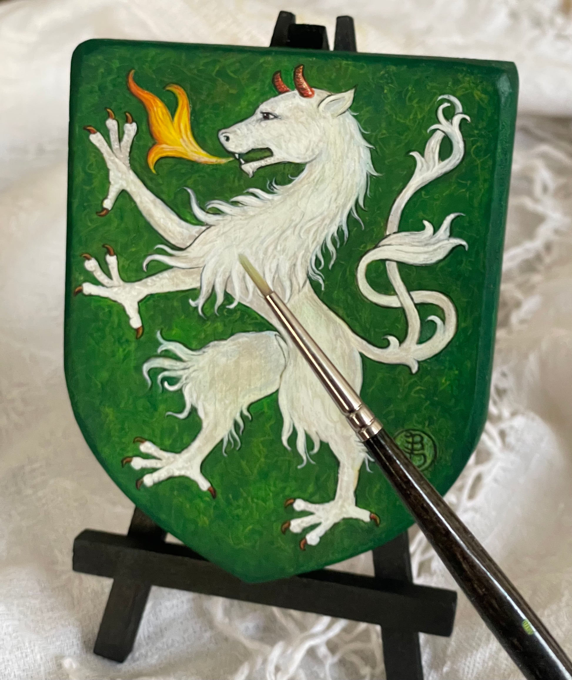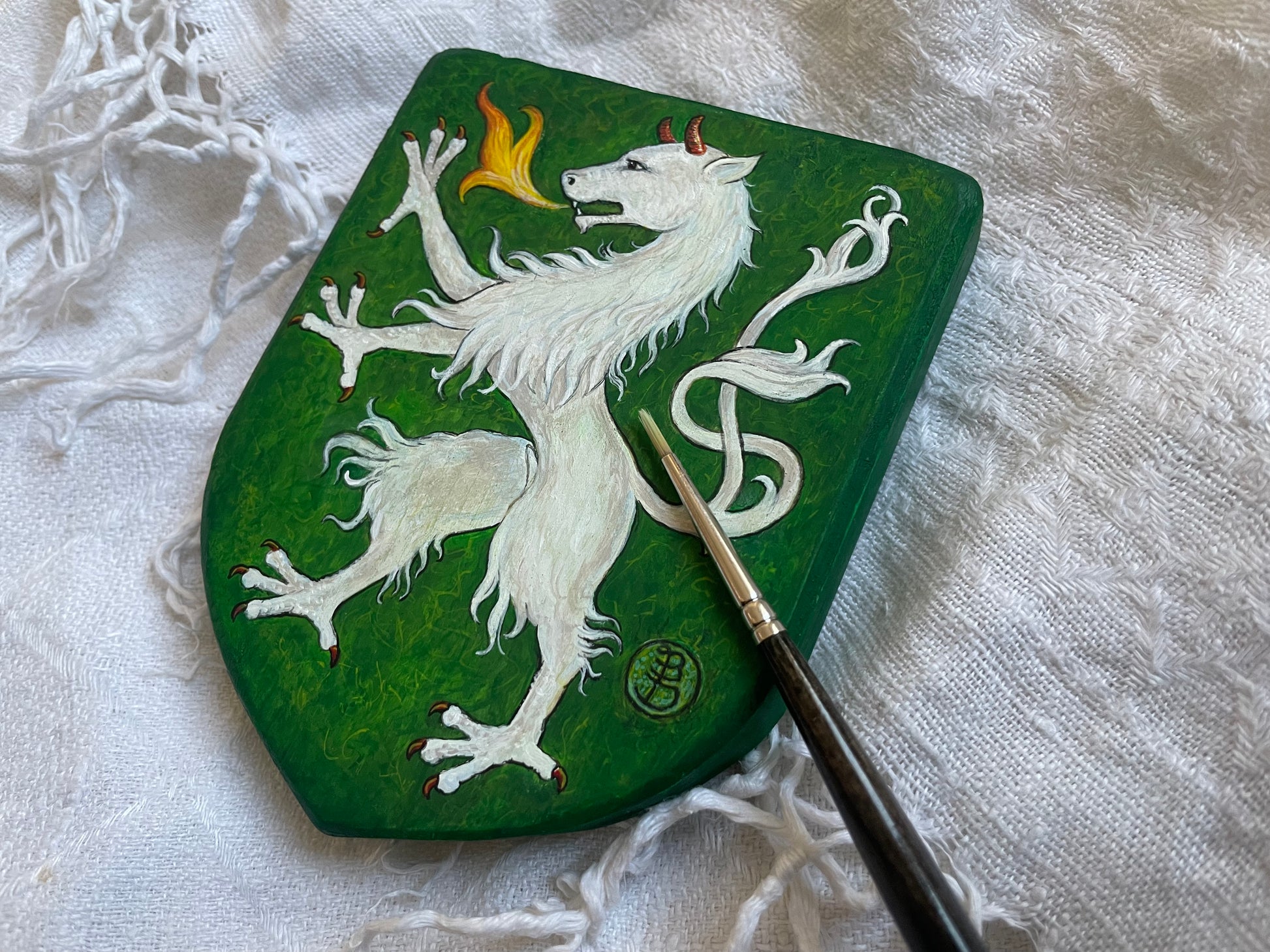 Dieser Panther („Panthier“) hat mit einer schwarzen Grosskatze wenig gemein - der heraldische Panther ist eine Chimäre: Der Kopf von Pferd oder Stier, mit langen Ohren und kurzen Hörnern; schwanenartig gebogener Hals mit Löwenmähne; Klauen eines Adlers und aufgerichteter Löwenschwanz; an den dicht bezottelten Beinen wieder Adlerklauen; die vormals aus allen Körperöffnungen ausgestoßenen Flammen reduziert auf eine Flamme aus dem Rachen.