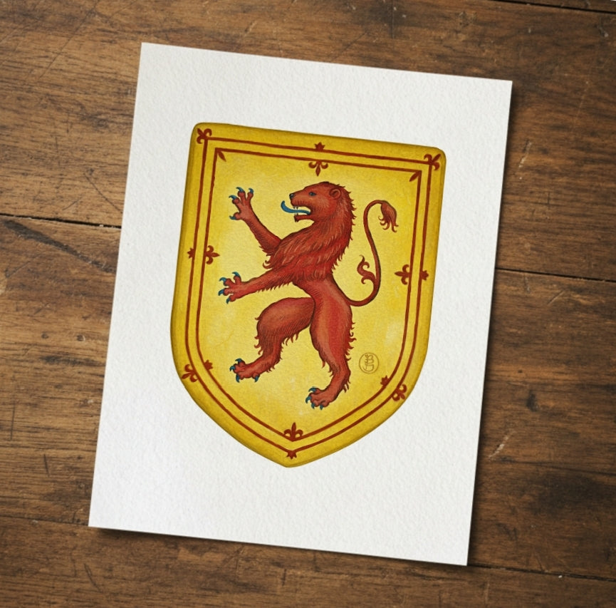 Hand-Painted Coat of Arms on Wooden Shield or Art Print from Watercolour - Red Lion on Gold | Scotland Heraldry Gift